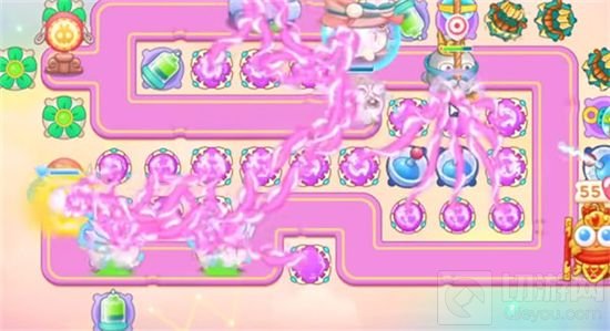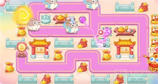 2、有钱以后1级魔法球立刻升2级,栏杆打掉以后升满级,锁中间的钱袋,兔子走到路线交汇的地方接触锁定开始打兔子,打完一波趁机再锁一下钱袋。