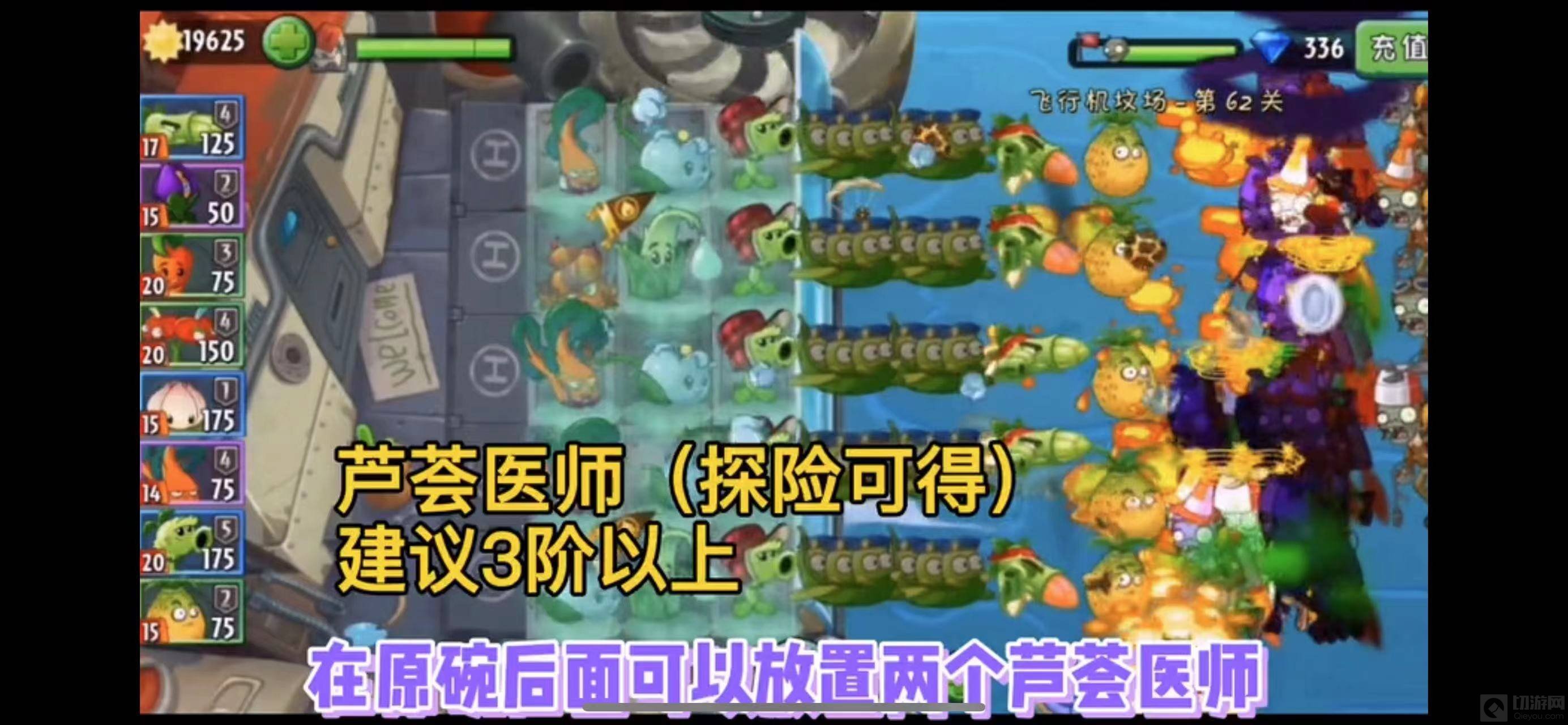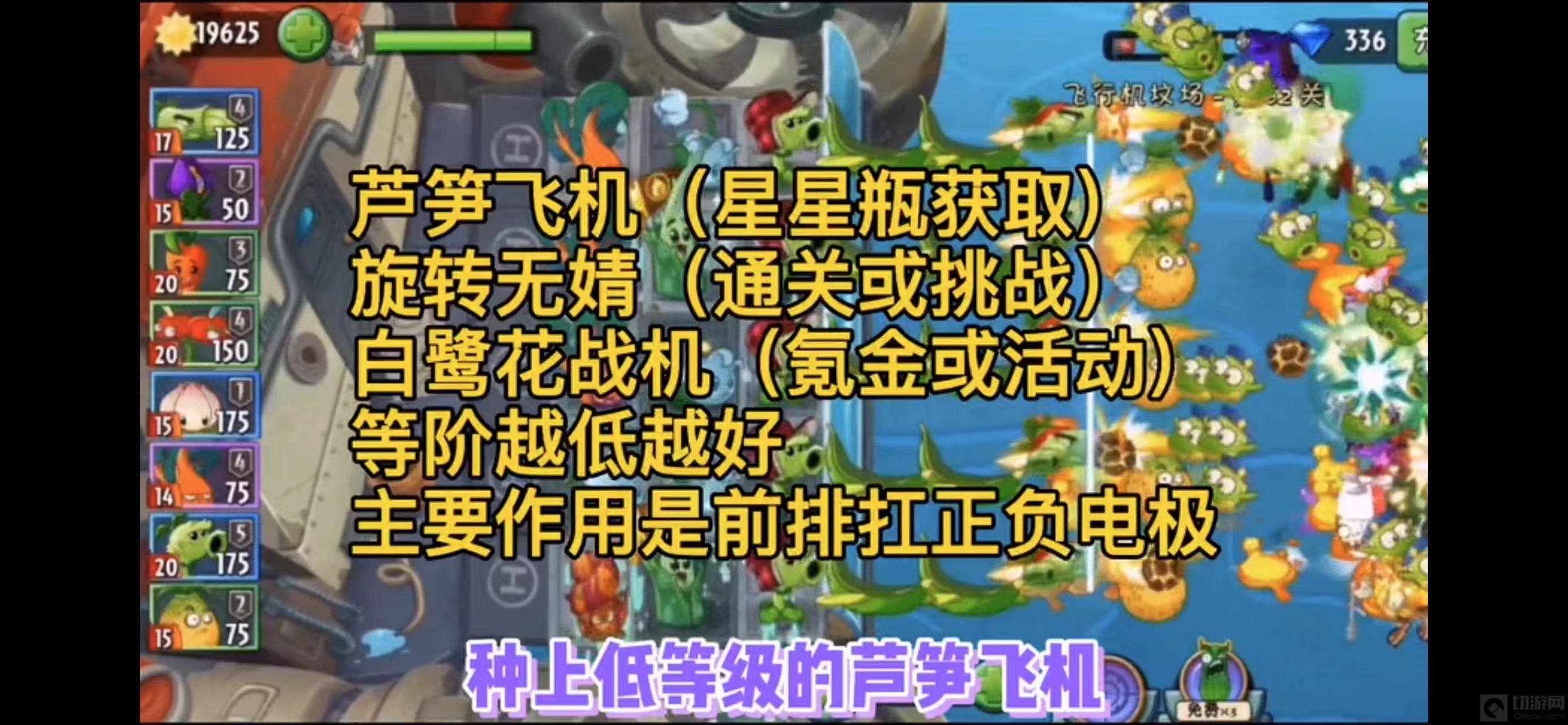 1、由于天空无尽的场地因素,导致我们能够在陆地上种植的植物只有15个。首先我建议大家在最前排种上低等级的芦笋飞机或者低等级的旋转芜菁。
