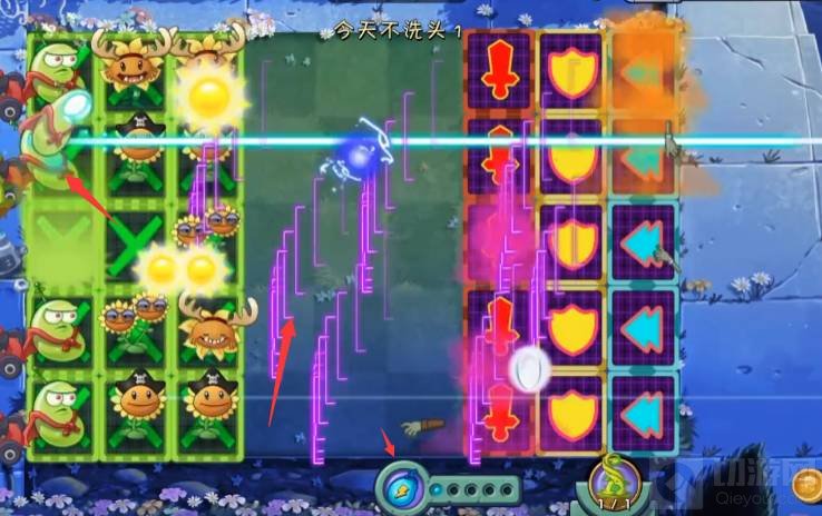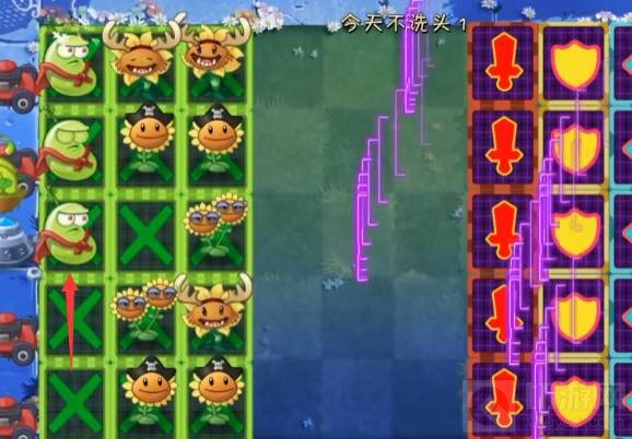 2、首先进入第5关,开局在前2排能量阵快速种植3种向日葵生产阳光。