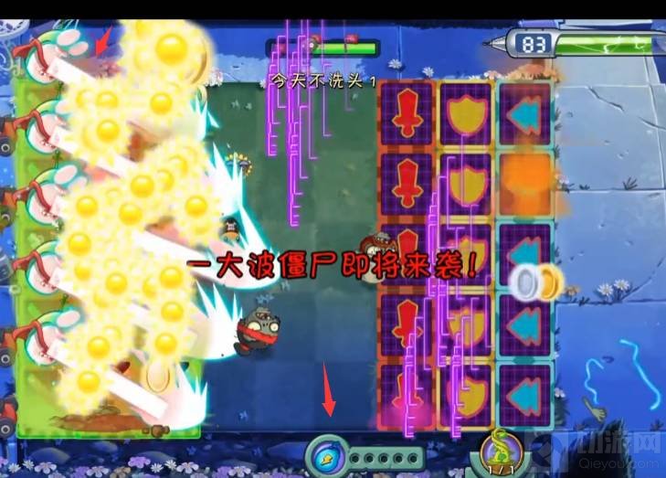5、后续的通关过程非常简单利用能量豆一直开大清理僵尸即可过关(只要对能量阵里释放能量豆,那么所有植物都会释放大招这就使得这关非常简单了)。