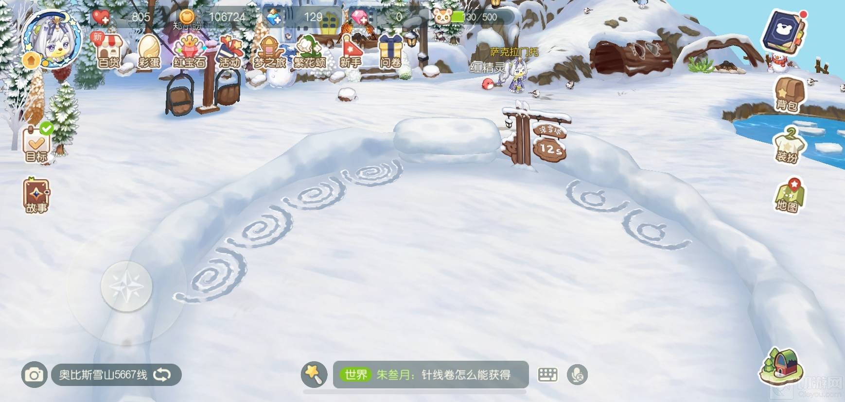 1、滚雪球小游戏是在奥比斯雪山,所以先来到奥比斯雪山,就会看到一个滚雪球的雪场。