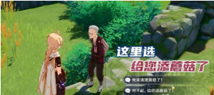 4、此时不要理会,继续摘蘑菇,全部摘完以后派蒙会说,这下就全部摘干净了。