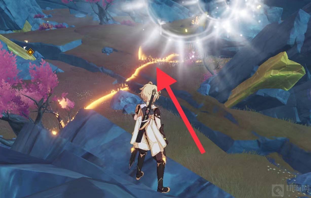 7、此时地面会出现金色的波纹,波纹会将入口的碎石震开。