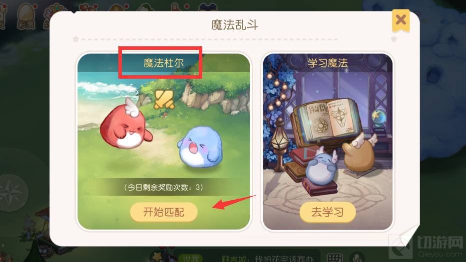 2、然后会进入到魔法乱斗界面,就可以看到魔法杜尔了,点击开始匹配即可进行魔法杜尔。