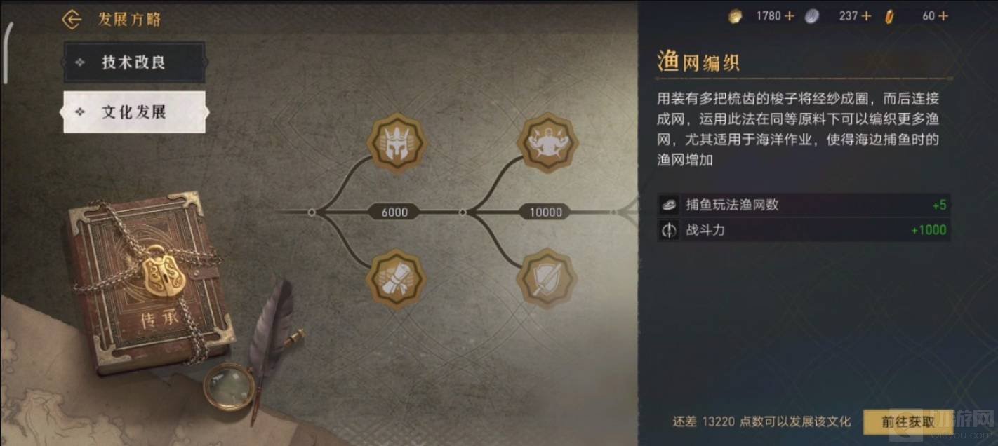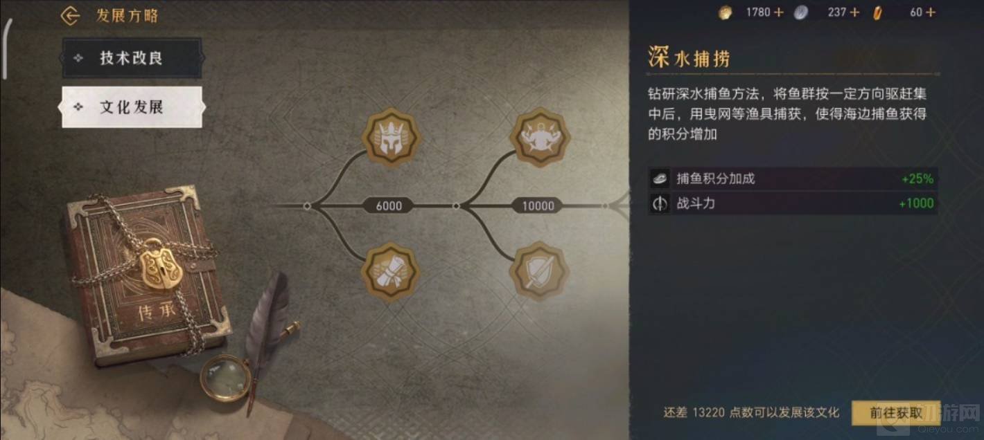 1、看自己的捕鱼技术。提升单次捕鱼得到的积分,选上面的“深水捕捞”。技术好的话,把把高分,可以选“渔网编织”。