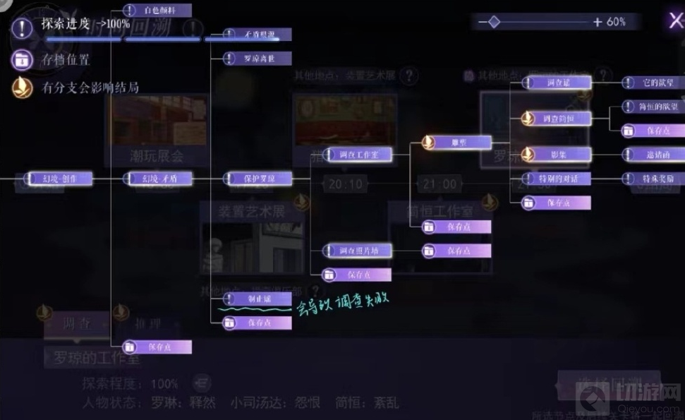 1、普通线:罗琳状态【释然】需要点击两次影集,第二次点击时获得;为收集进度必须失败一次(选择制止谣)