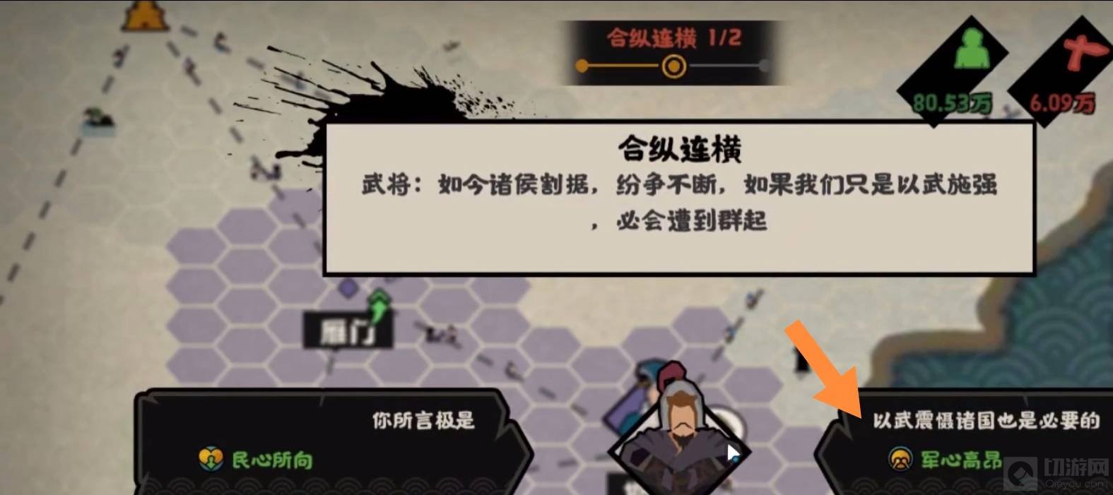 4、选择军心高昂打败敌军即可让敌人臣服。