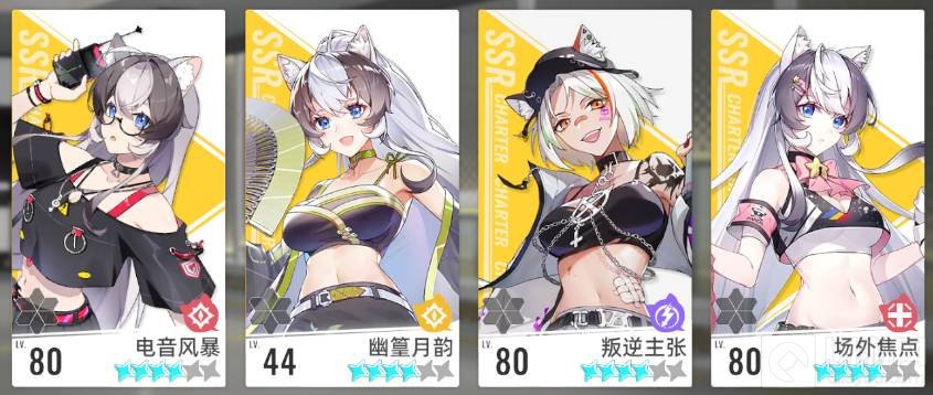 2、通关阵容:电音风暴 幽篁月韵 叛逆主张 场外焦点。