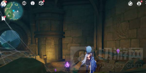 三号宝珠的点位就在二号宝珠点位旁边。左侧是已经打开了隐藏房间的二号宝珠点位,三号宝珠就在右侧台阶下去的雷鸟图案后面的隐藏房间内!对着雷鸟使用羽毛,开启隐藏房间!隐藏房间内有一个火把解密:答案在这里三号如星的宝珠点位的天花板上,隐藏房间内还有一个雷灵解密!而我们需要寻找的如星的宝珠就在这里的上方。