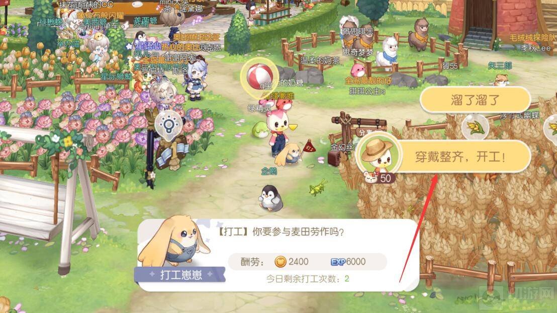 4.再点击拿着“打工”小红旗的精灵开始打工。