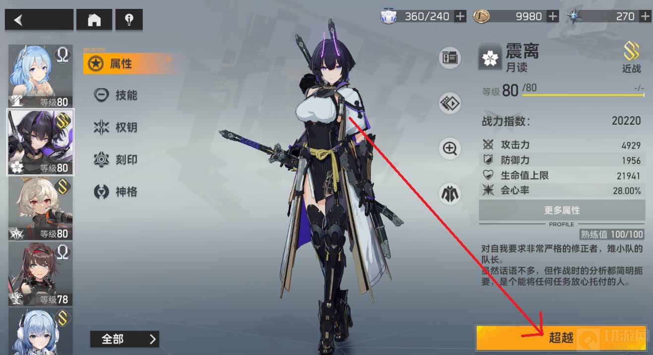 深空之眼限定角色怎么超越?在游戏中有部分玩家对此还不太了解。接下来让为大家介绍一下吧。 深空之眼限定角色超越技巧 1、先打开深空之眼,首先在限定角色属性界面点击‘超越’。 2、