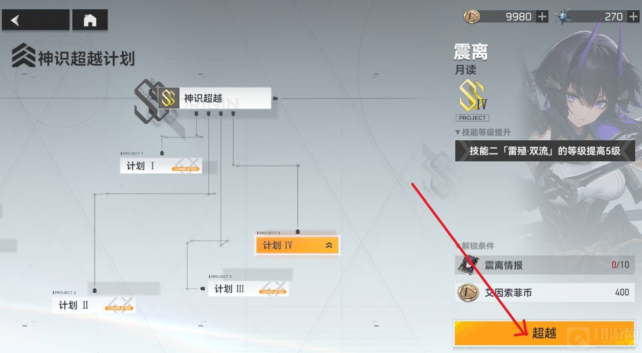 2、然后选择‘神识超越’点击右下角‘超越按钮’。