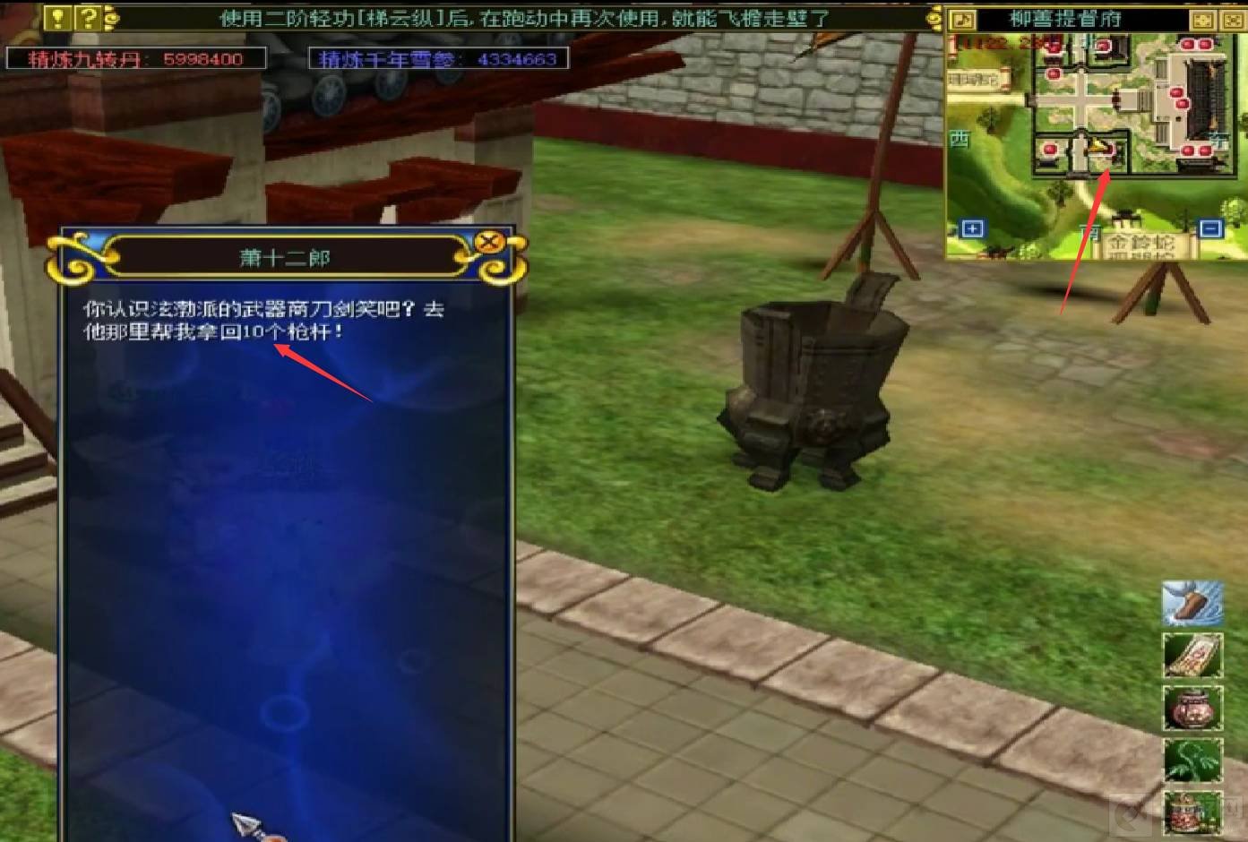6.萧十二郎位置如下图,需要去找泫勃派的刀剑笑,拿回10个枪杆。