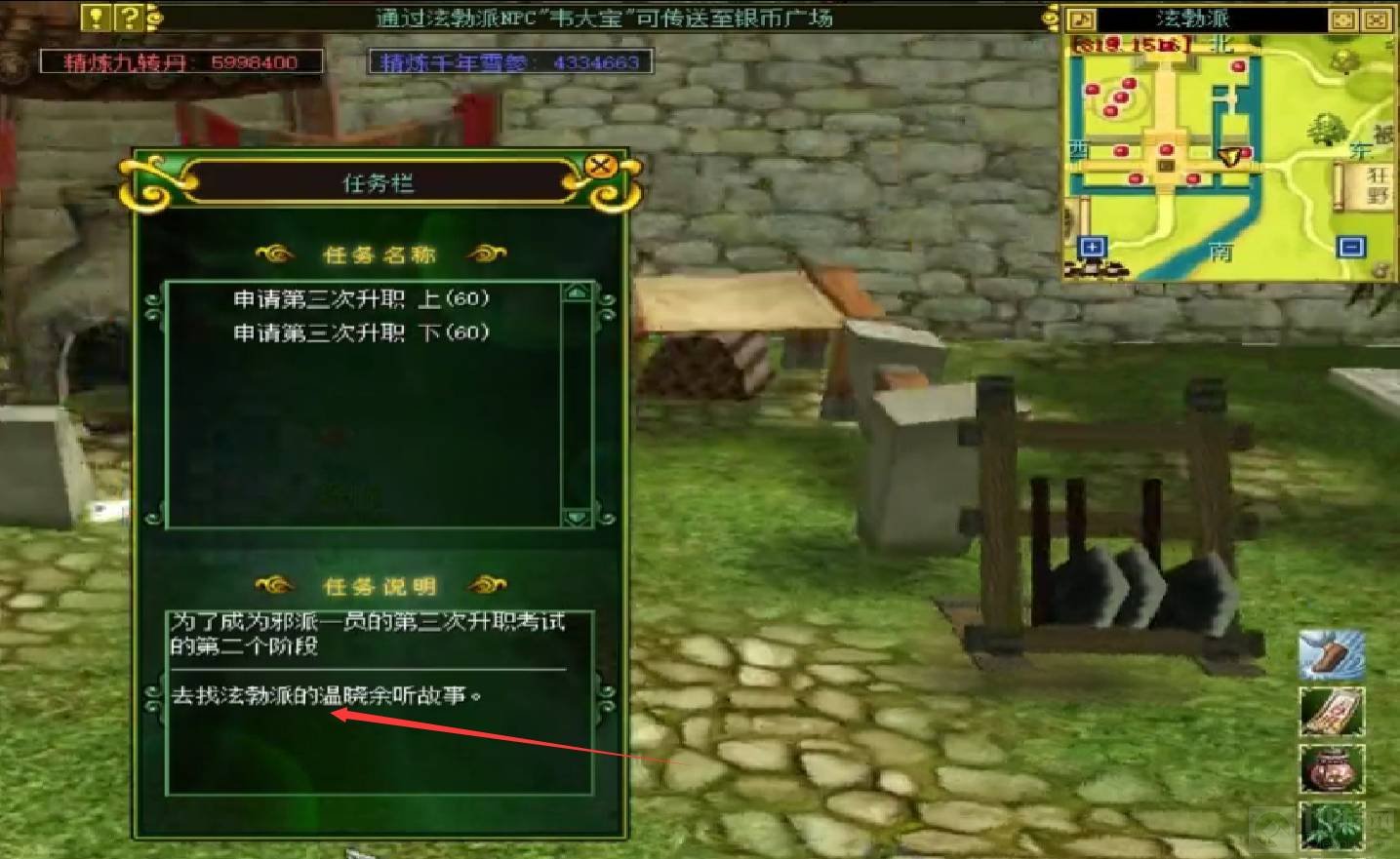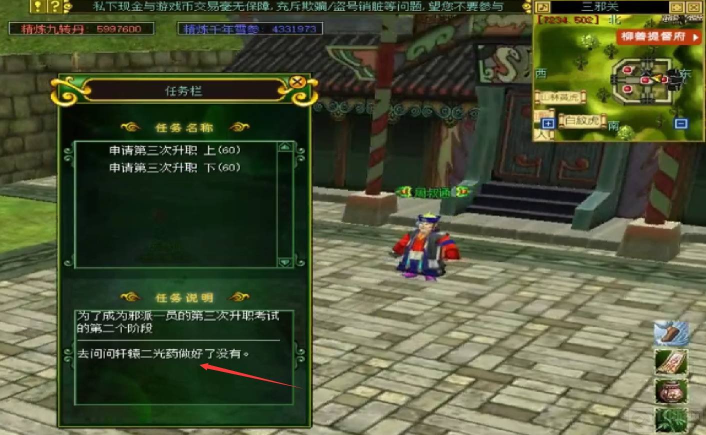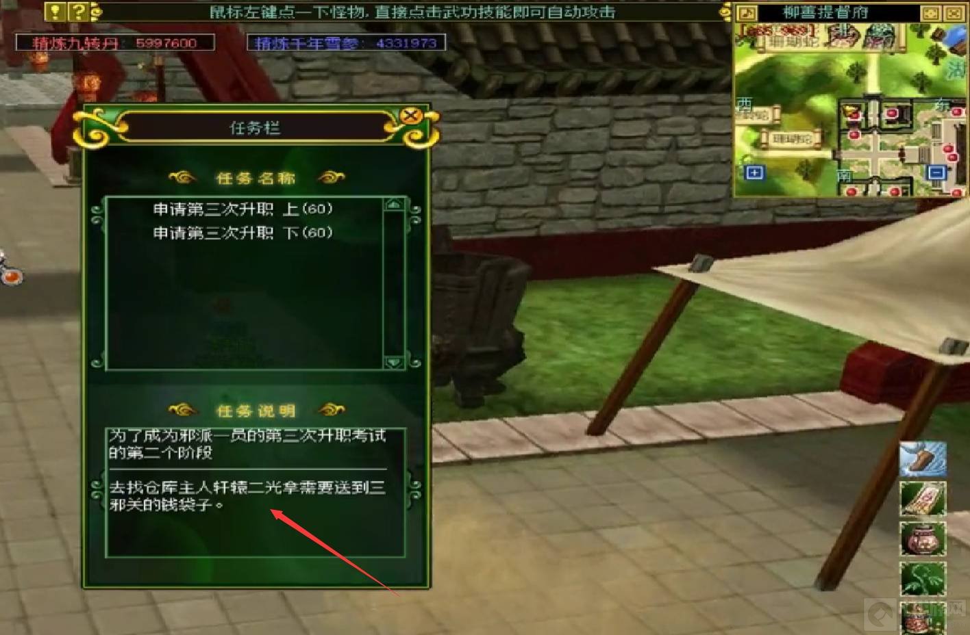 15.将钱袋子交给三邪关的周叔通,位置如下所示,返回轩辕二光处继续任务。