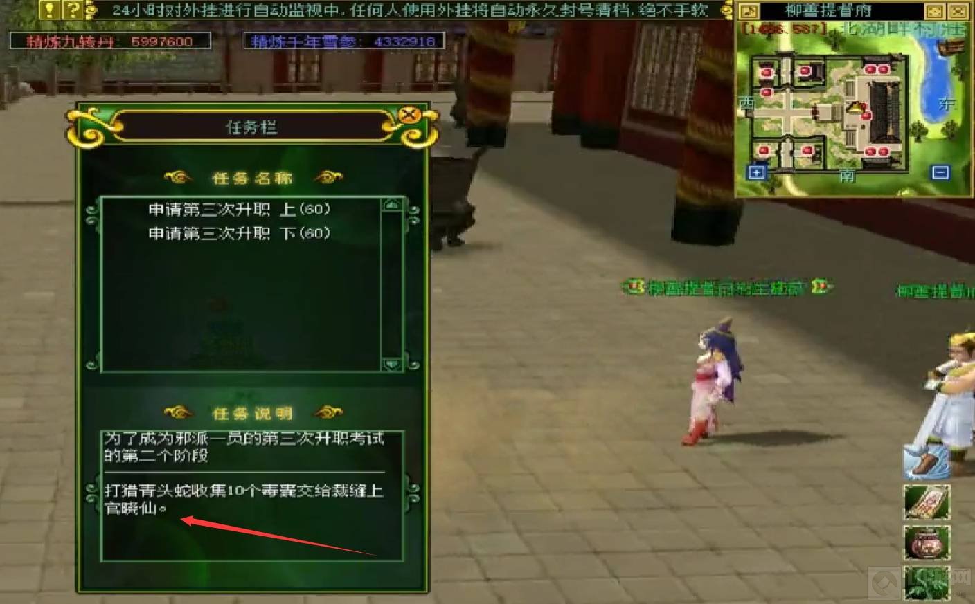 2.完成前置任务后,前往柳善提督府施薇处领取第三次升职上任务。