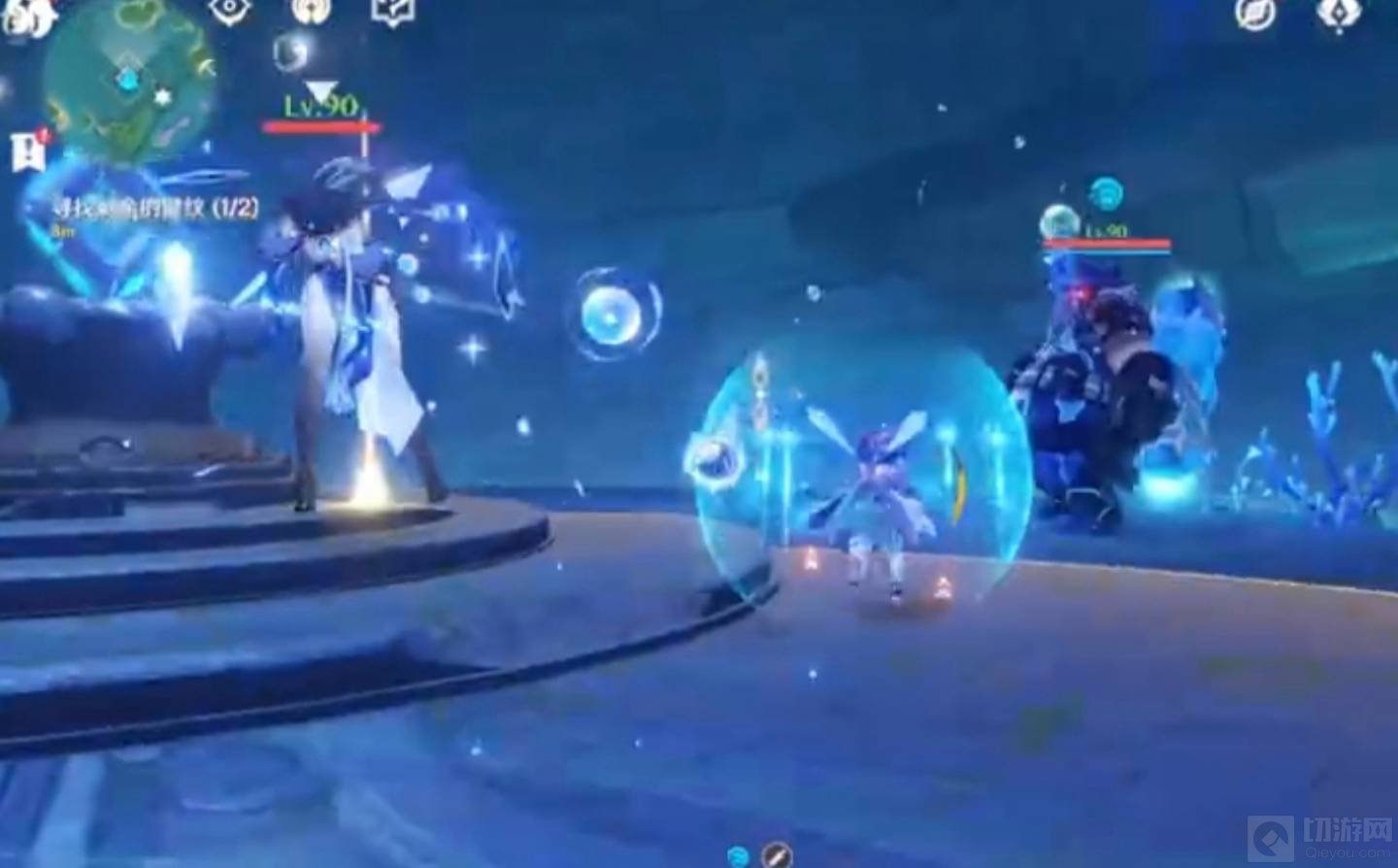 3、寻找键纹(该任务一共需要寻找两个键纹)。第一个键纹位置:跟随指引击败愚人众,获取第一个键纹。