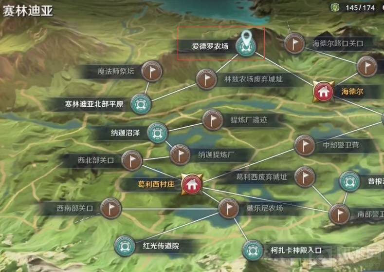 首先打开地图,传送到塞林迪亚的爱德罗农场。