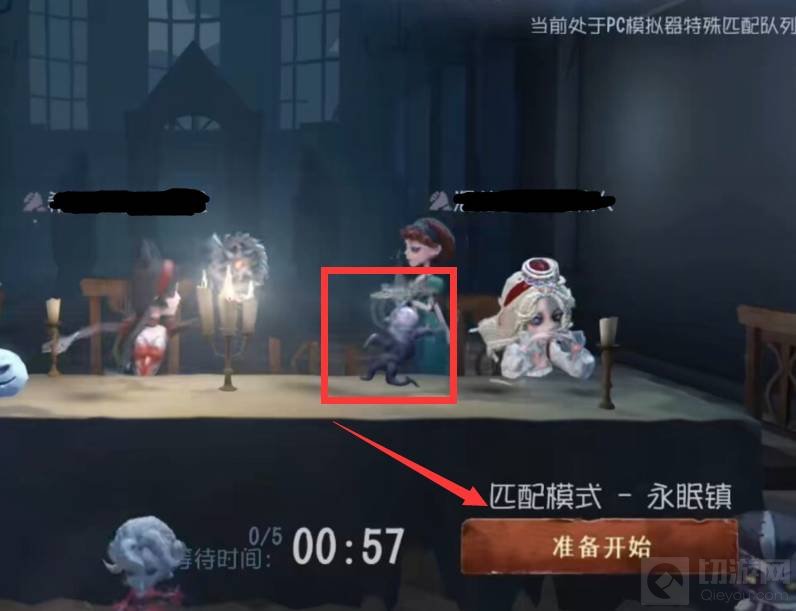 3、装配菜品的可以在匹配成功后,在等待大厅中点击窥视者和巡视者进行交互,来给自己的角色上菜。求生者视角点击下图红框的位置可以上菜。