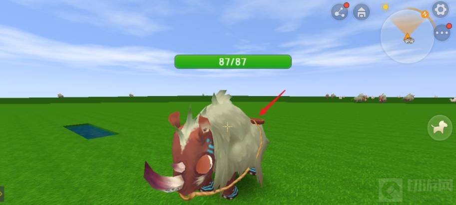 四、拿出坐骑的鞍,鼠标右击野牛使用,给牛套上鞍。