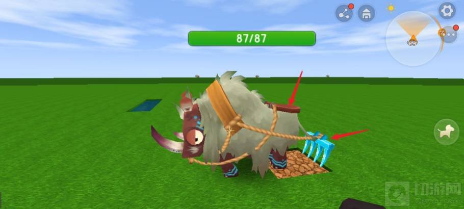 五、拿出任意耙子,鼠标右击野牛,给牛装备钯子。