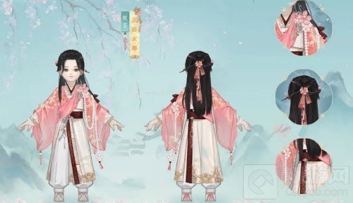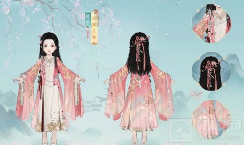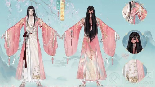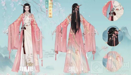 2、女侠以桃花与珍珠点缀于发间,优雅与灵动并存。玉白色的内衬裙摆似天光微熹,流风也染上了朝霞的色彩,衬得祥云与飞花更是飘然。