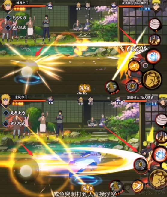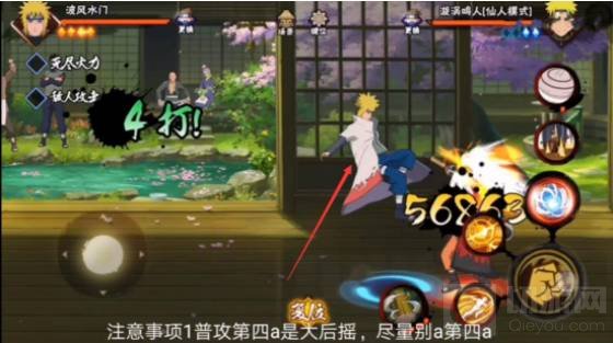 3、水门的连招技巧:2A1AAA32,开局先使用2技能接普攻来瞬身打到目标,打出一套普攻伤害后接1技能来打出连环攻击,随后就可以一直进行稳定的3A击打目标,在目标倒地时可以使用大招,因为大招是带有扫地效果的,大招开启之后会对目标打出大浮空,所以大招是可以接技能的,接上2技能来蹭怒气豆防止被敌方反打,这套技能连招的爆发伤害很高,同时也很实用。