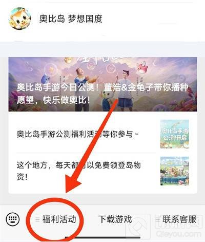 1、在微信公众号,搜索奥比岛梦想国度进入,然后点击左下方的福利活动。
