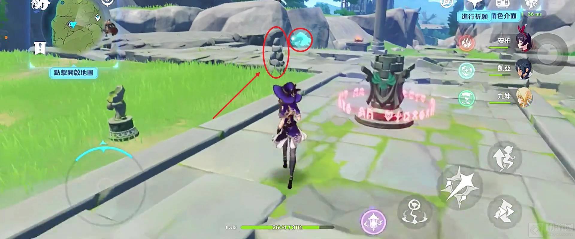 4. 第四个仙灵位置在山壁的石堆中间,打破石堆仙灵就出现了。