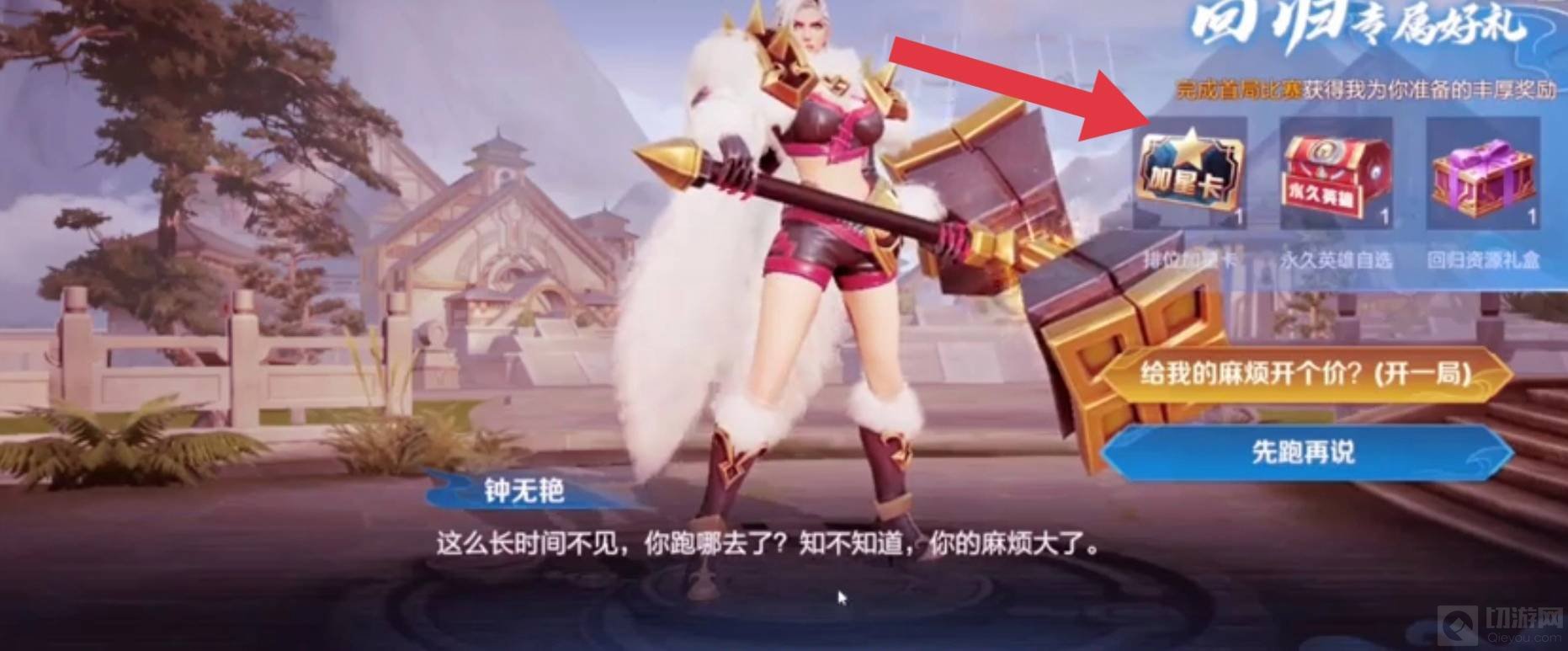 2. 归来卡的奖励有三个,分别是加星卡,永久英雄自选礼包,回归资源礼盒。