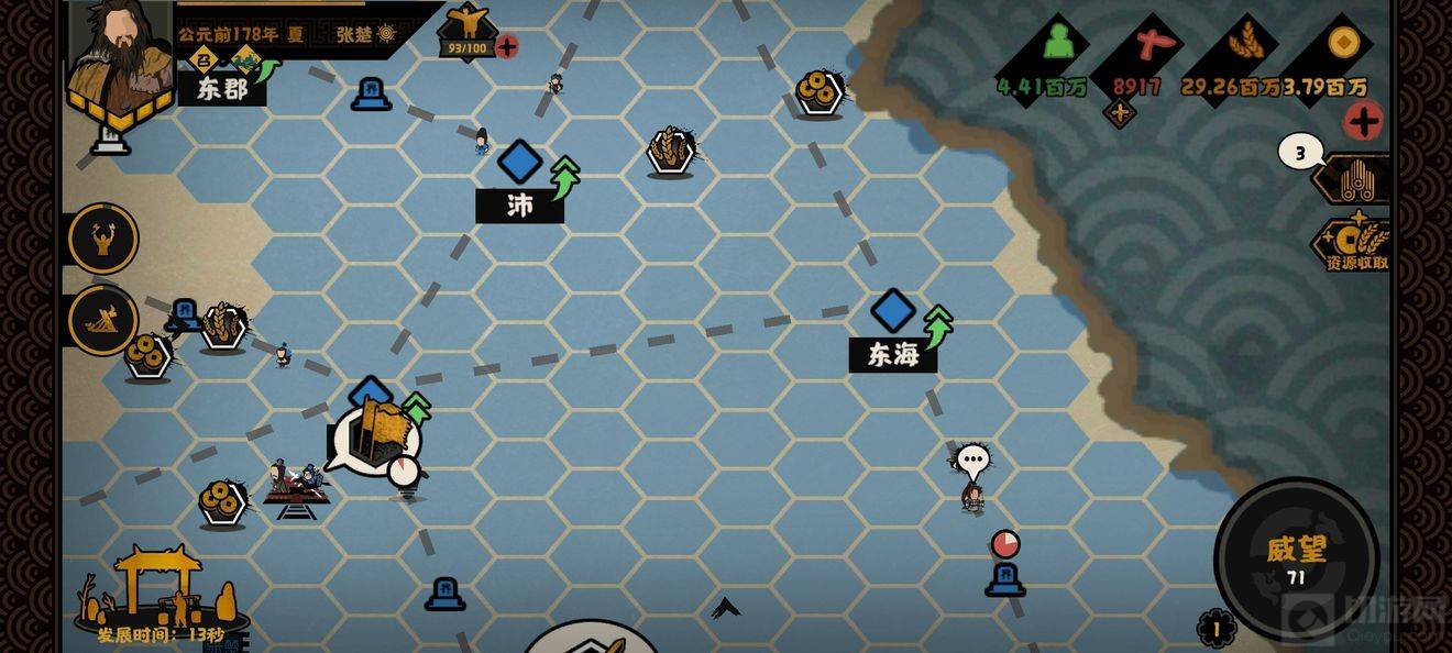 2. 再攻打东海,成功之后会冒出三个小人,拿宝剑那个就是韩信,很容易认出来。