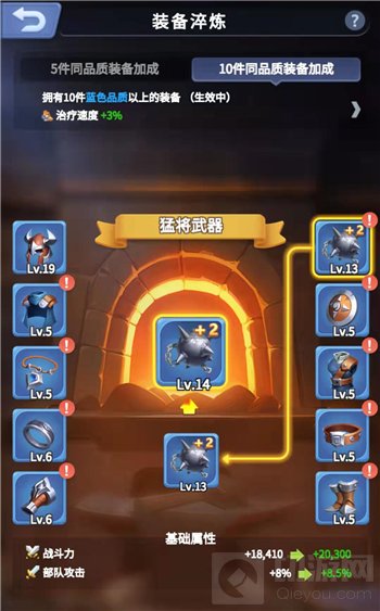 1、主堡13级可解锁领主装备,能够百分比提升所有部队属性
