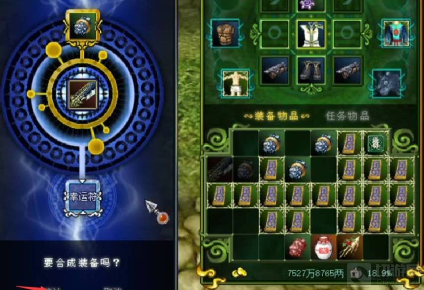 3. 将武器和要合成石头放在里面,添加一张幸运符,点击确认即可。
