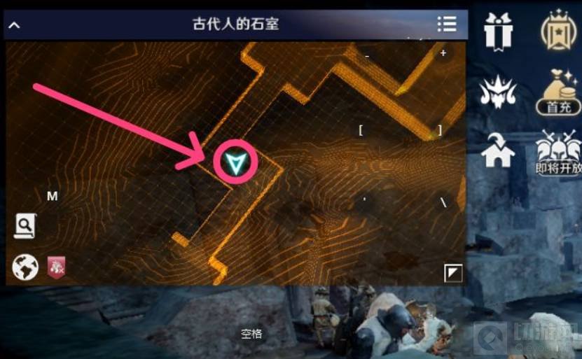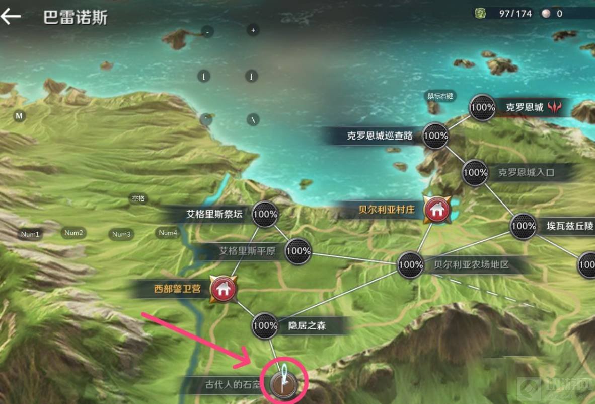 1、首先打开世界地图,找到巴雷诺斯领地中的古代人的石室,点击进入到地图里面。