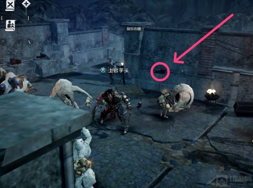 3、达到位置后,会发现这是一个快拐角地方,知识就是右手边的墙上,颜色标注好的位置。