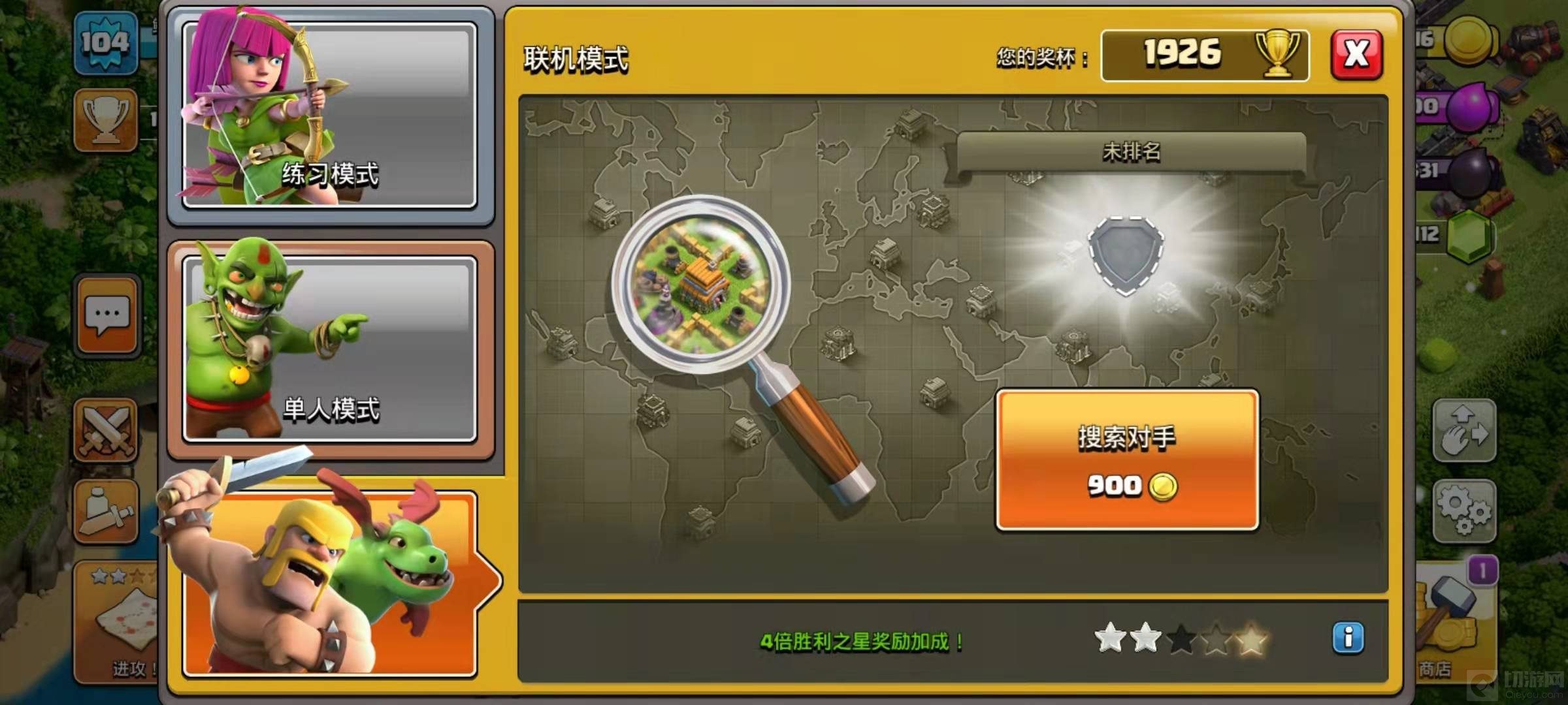 部落冲突传奇杯怎么掉下来?在游戏中有部分玩家对此还不太了解。接下来让为大家介绍一下吧。 部落冲突传奇杯掉下来技巧 1.首先进入部落冲突,然后点击左下角的进攻,再点击搜寻对手。 2. 找到对手后,在任意