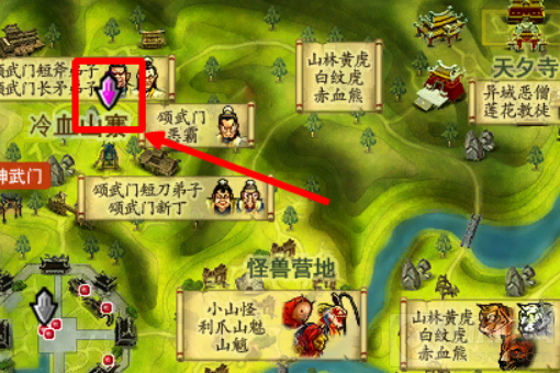 2、【邪】-千晓生.三邪关【以夷制夷】怪物位置:邪派的在地图上刷绿林山贼那一圈找,三邪关地图的最最右下角,三邪绿林寨(7343,-2245),有一个穿着"小船"的家伙就是。