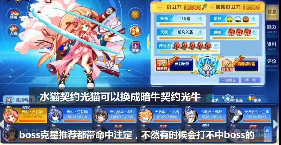 二:Boss关:第一种1380w左右,展昭给光猫赋能;第二种1480w左右;第三种理论上比前两种多,展昭给光牛赋能。