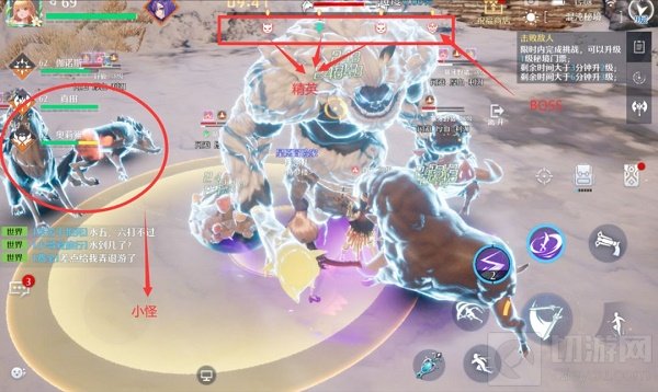 1.进入战斗后,从进度条上可以看出整场战斗中,与精英怪和小怪的交战时间最久,因此在攻击类属性中,增伤的优先级为:对精英怪伤害倍率>对首领伤害倍率>对小怪伤害倍率