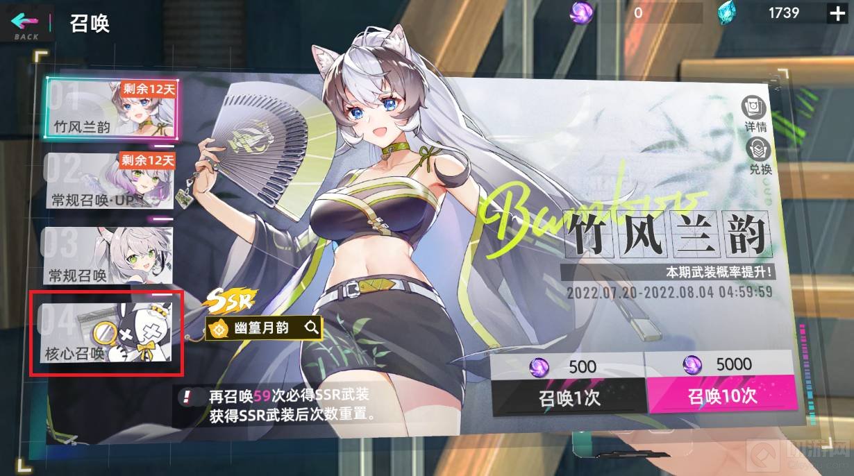 2、然后进入召唤页面,选择核心召唤。