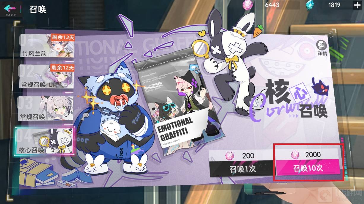 3、最后点击‘召唤10次’,花费2000涂鸦晶石即可抽核心。