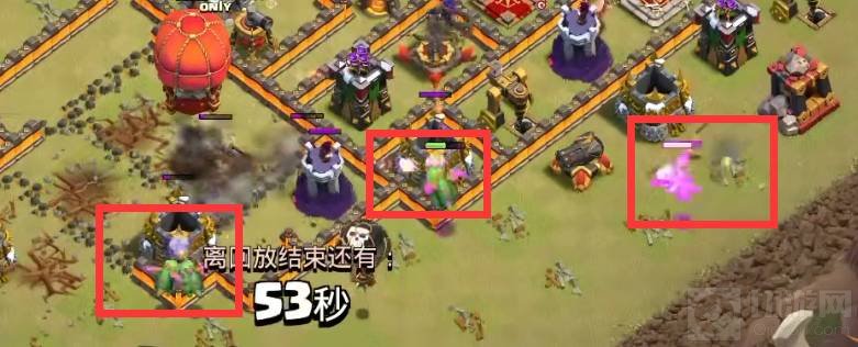 2. 手头还有闪电地震龙宝,不妨攻击三王的台子和小房子,脆皮得很。尝试攻击原本攻击侧的没有被打掉的建筑物,一般是残血的。