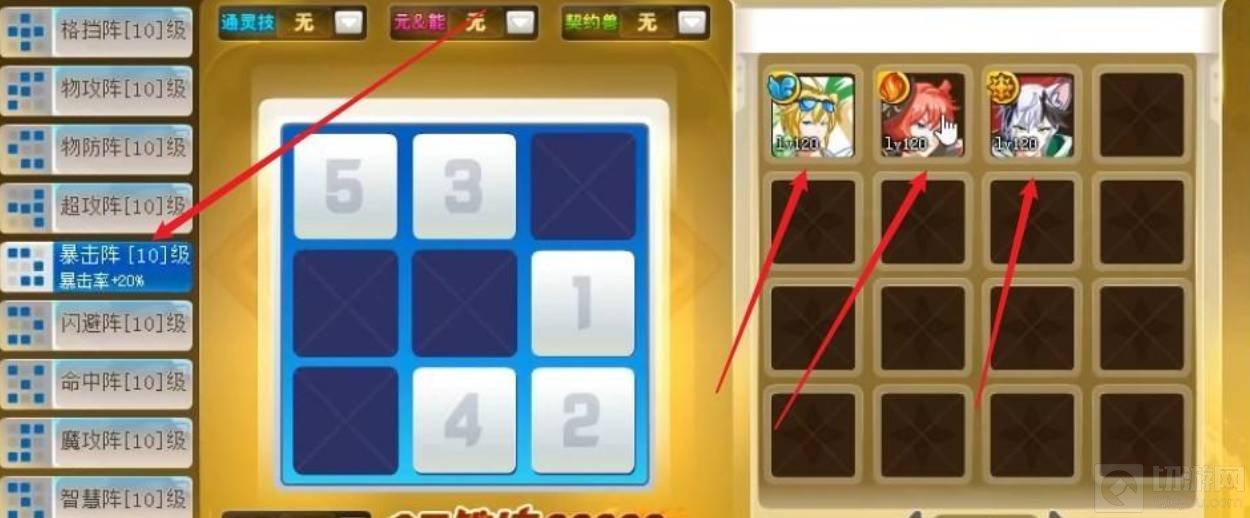 3.在挑战准备界面,选择暴击阵,然后将英雄移动到左边就可以让英雄出战。
