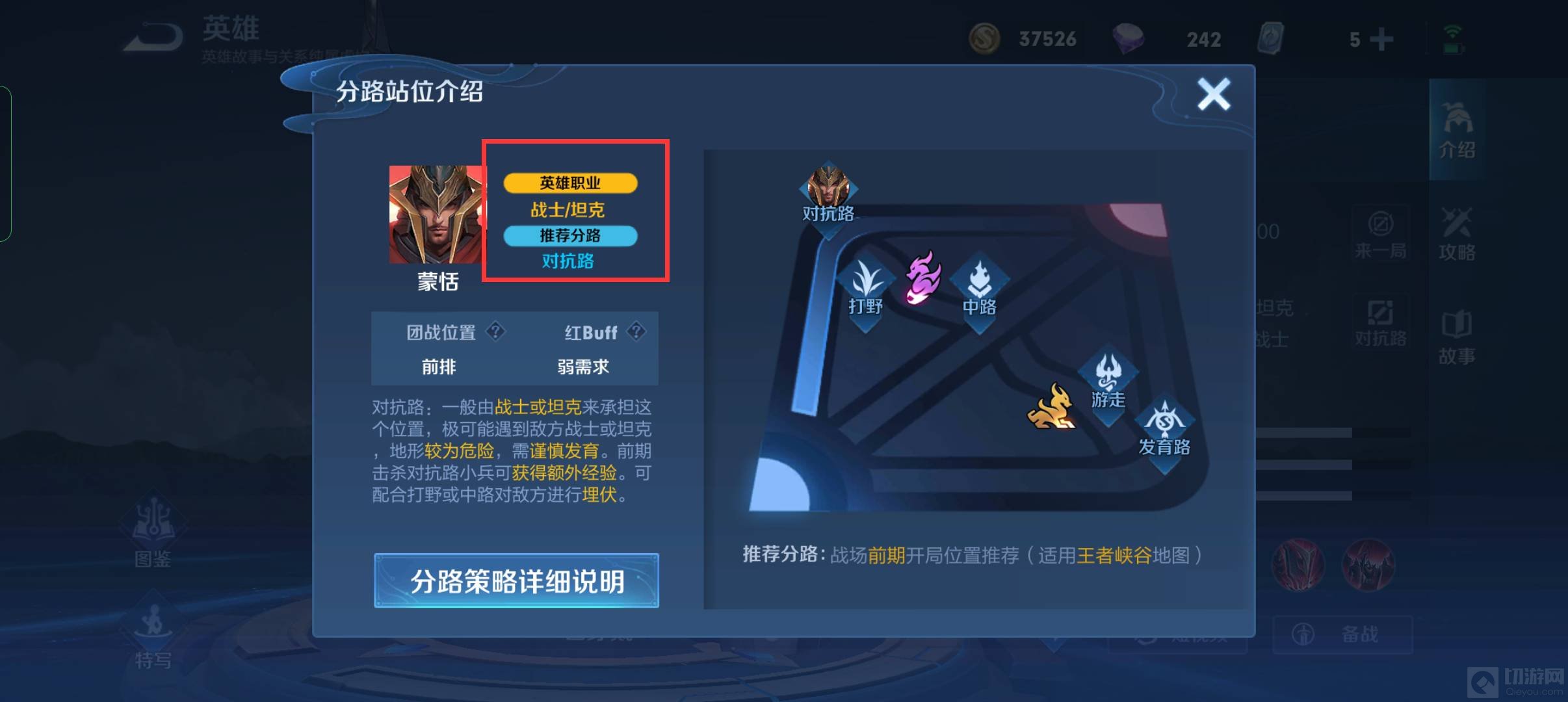 作为一名战士/坦克,主要发育地点就是在对抗路,需要配合队友主动突进控制敌人,取得己方优势。