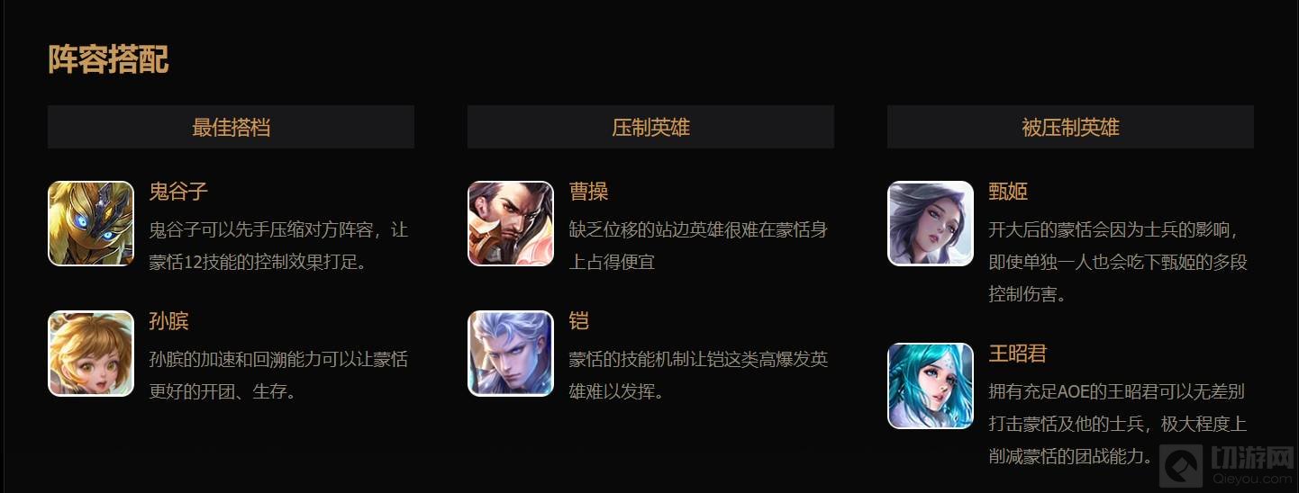 王者荣耀蒙恬怎么玩?在游戏中有部分玩家对此还不太了解。接下来让为大家介绍一下吧。
