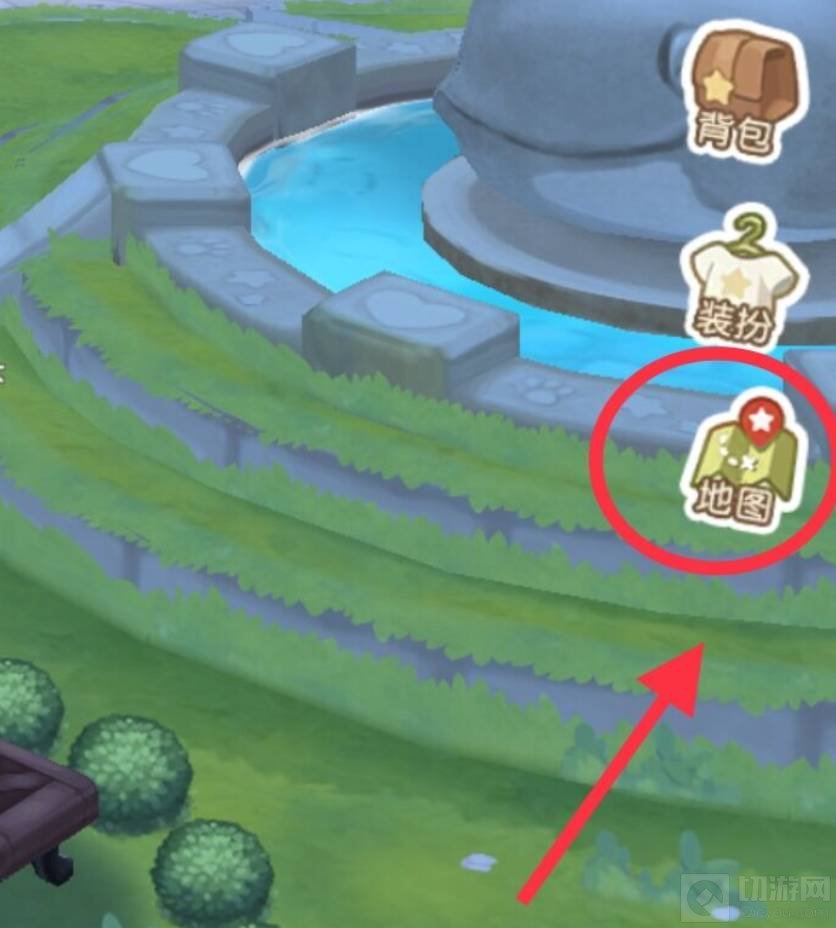首先进入游戏页面,在右侧找到地图并点击打开。