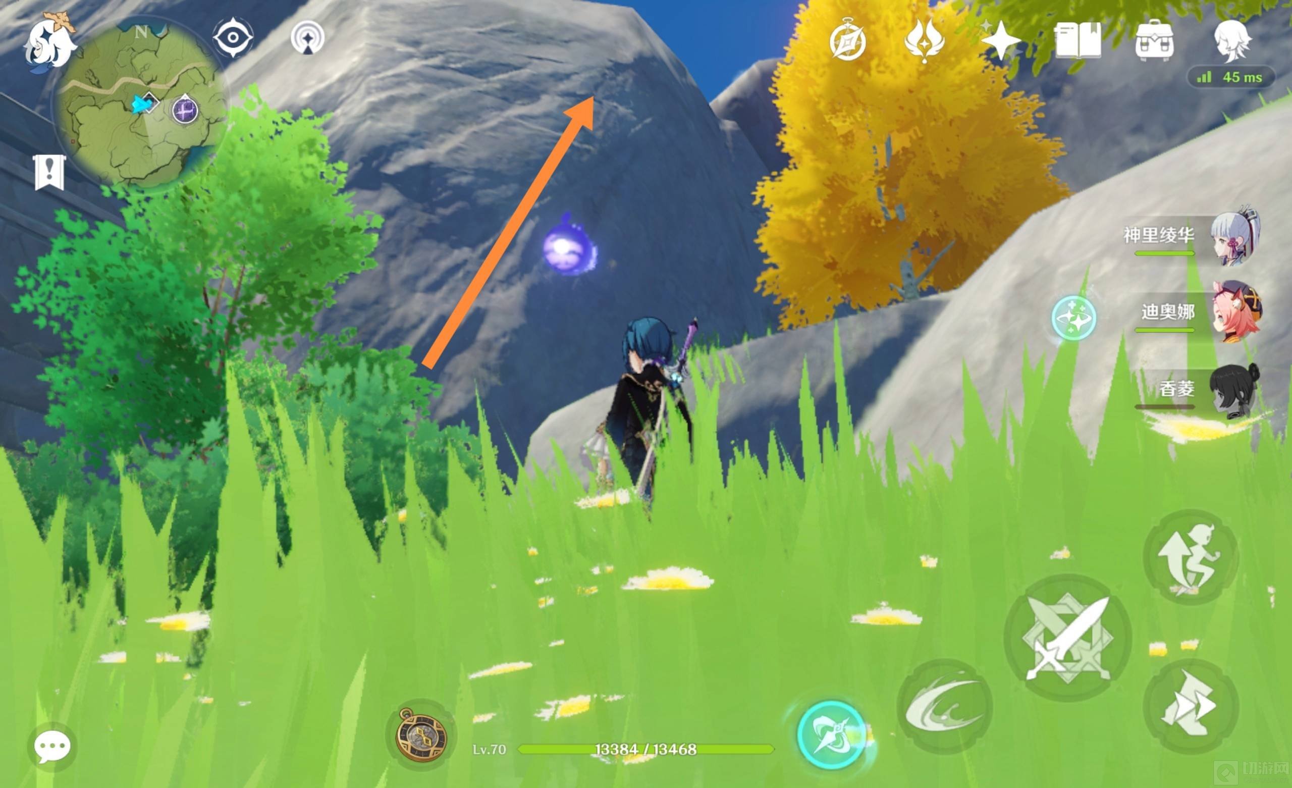 3、到达山顶后面前的紫色方块就是无相之雷了。