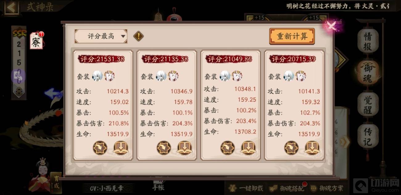 2,熏需要速度比阿修罗高,熏用于增伤,如果有食灵或者缘结神增伤那就更煎好了,座敷带火灵打火,提高狂骨御魂伤害。