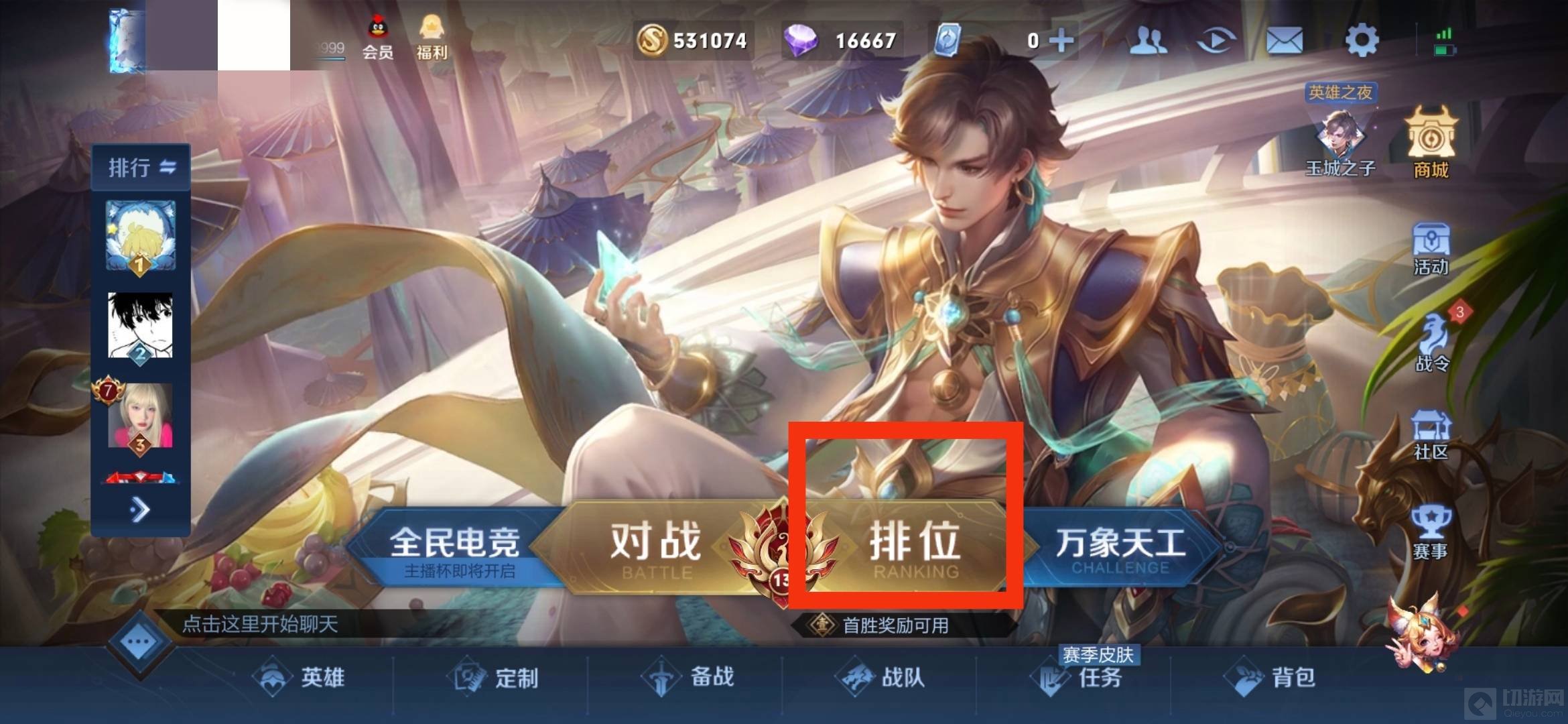 1.首先打开王者荣耀,进入主页面后点击排位。