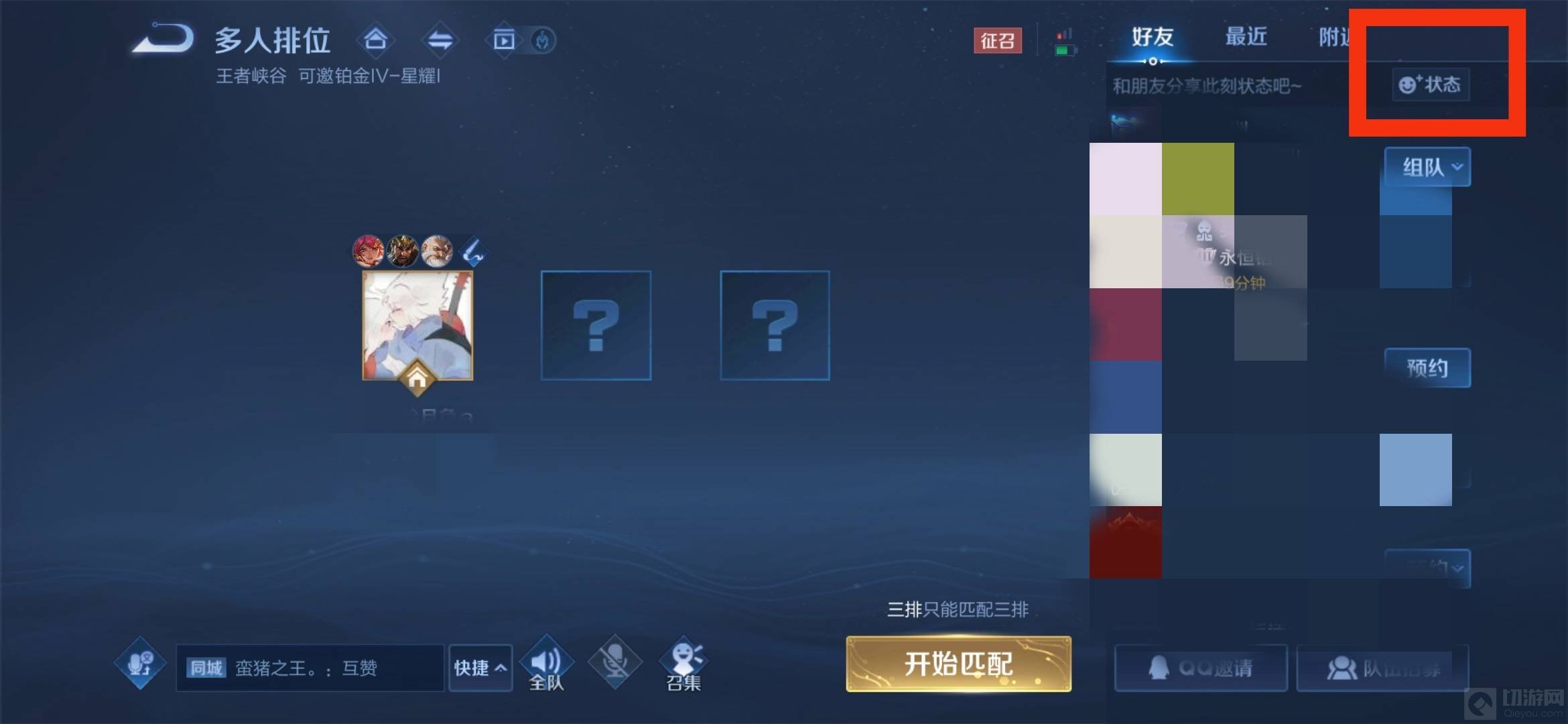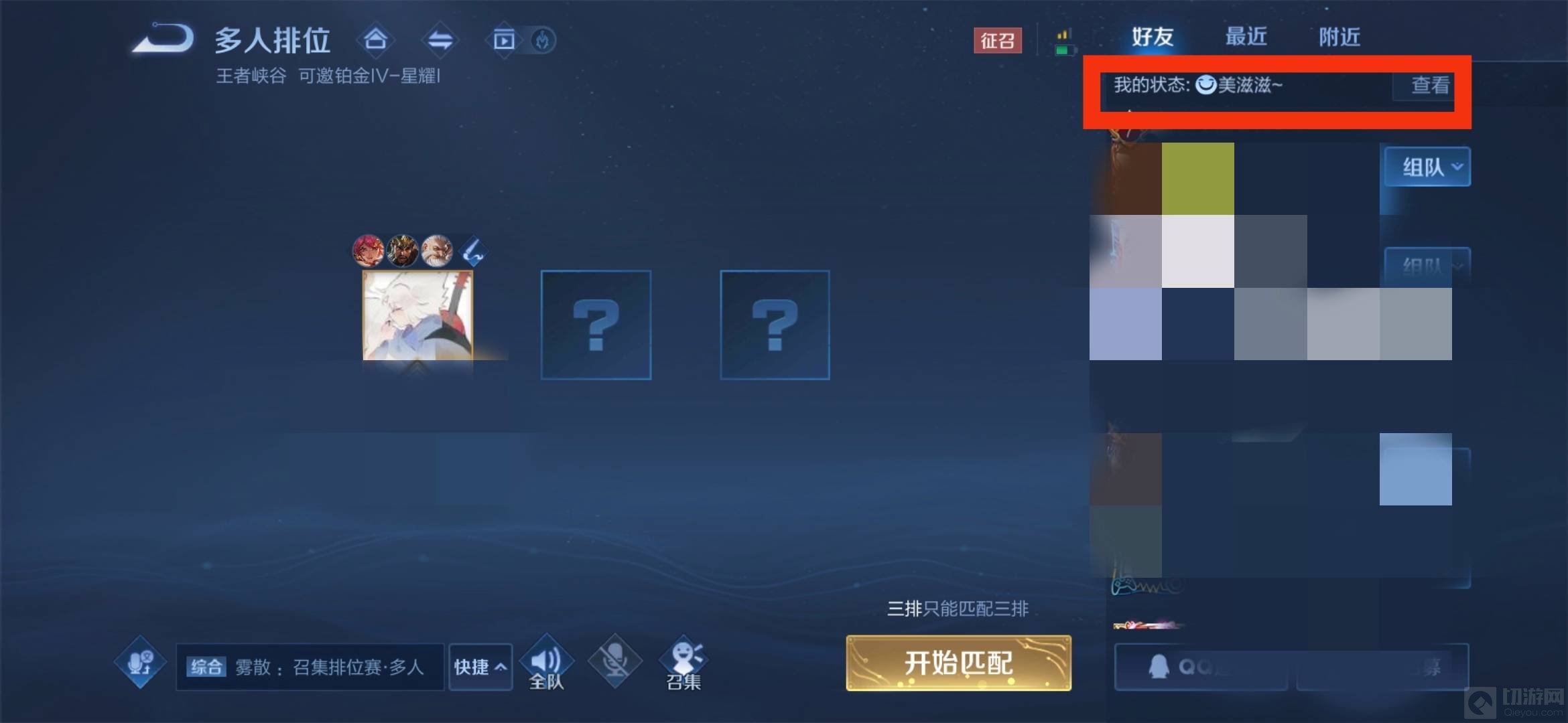 5. 这样好友列表上方就会出现一个自己的当前状态显示了,在组队期间游戏名字前方也会出现状态小图标显示了。