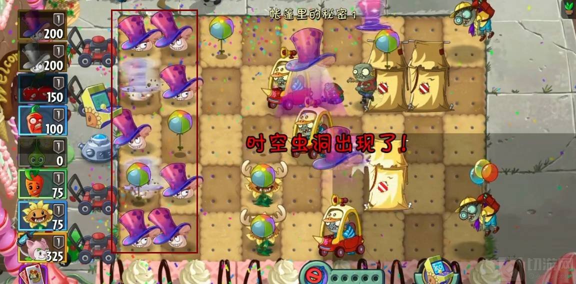 3、在后排种上疯帽菇,疯狂攻击僵尸。
